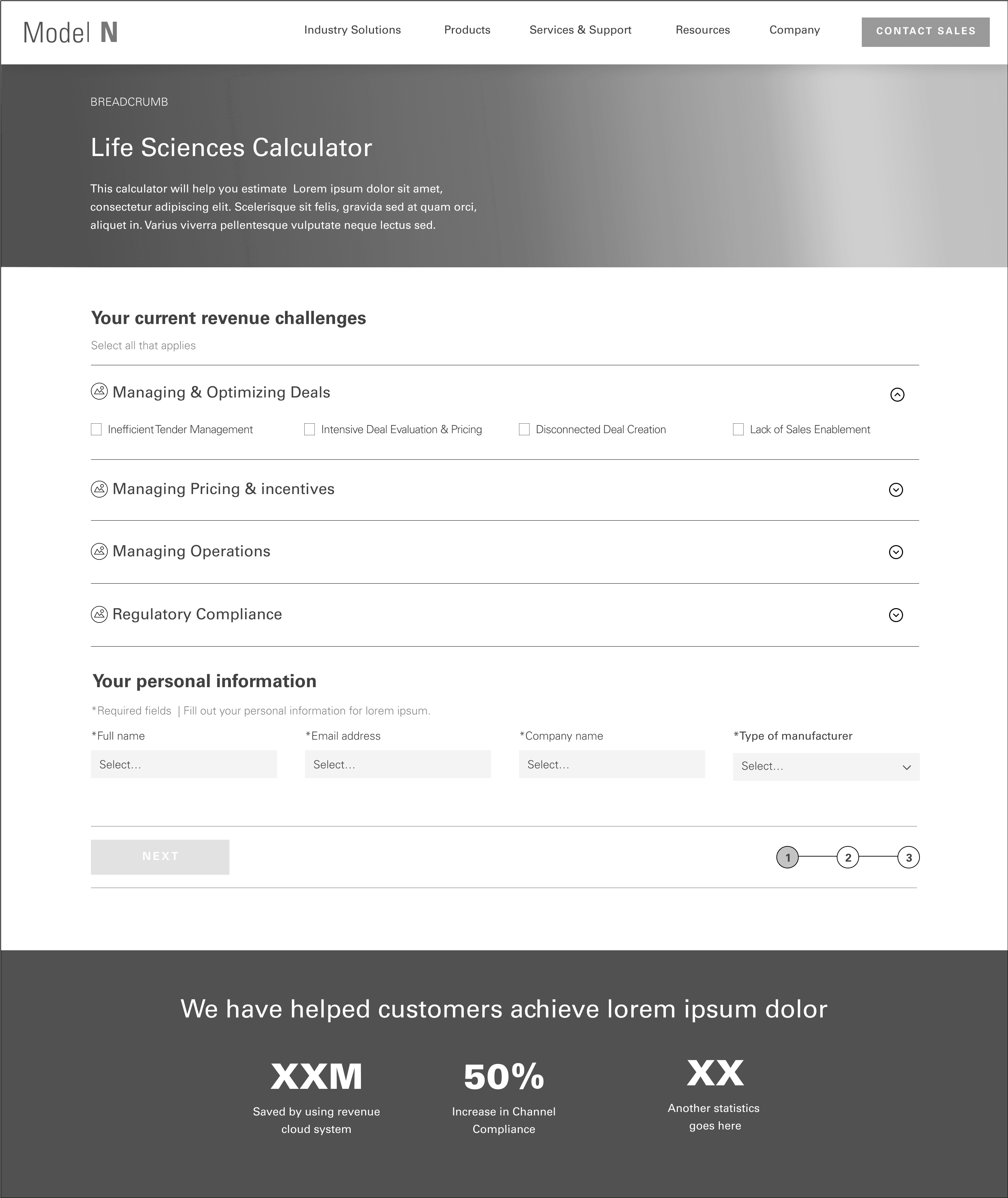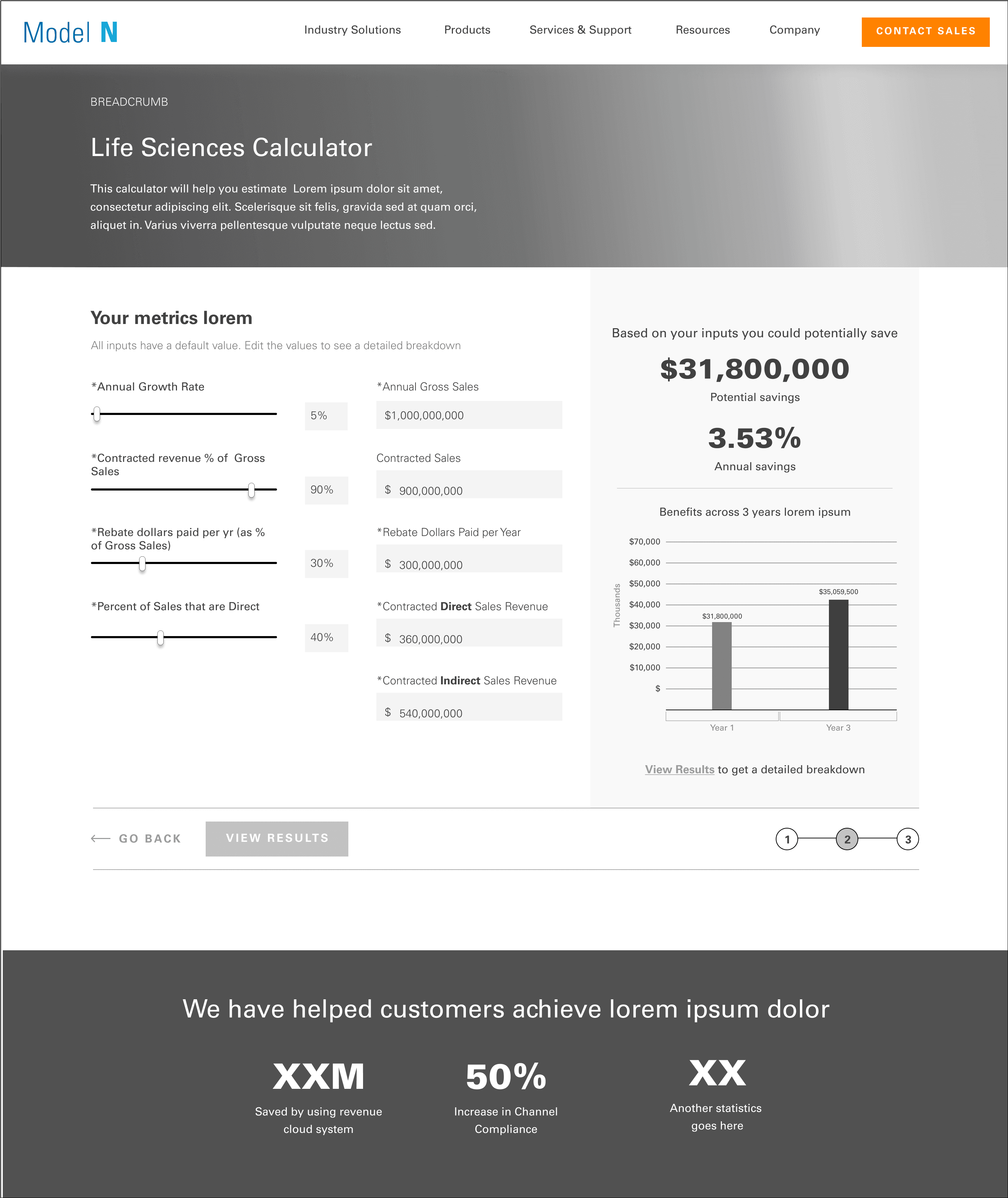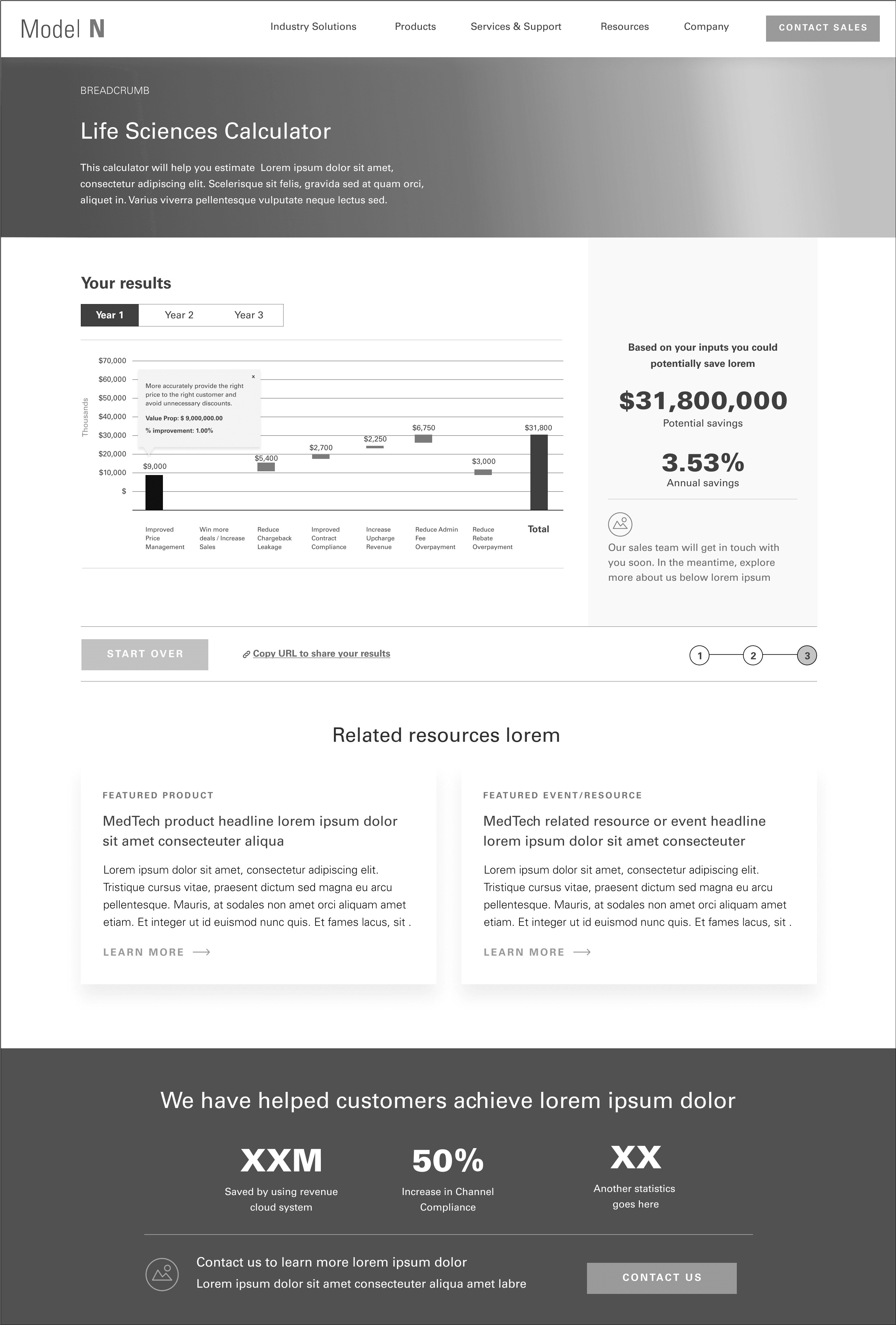 Model N, a leader in revenue optimization and compliance for pharmaceutical, medtech and high-tech innovators. The goal was to create user friendly calculator that streamlined the sales process, reducing time & effort in generating quotes and proposals.